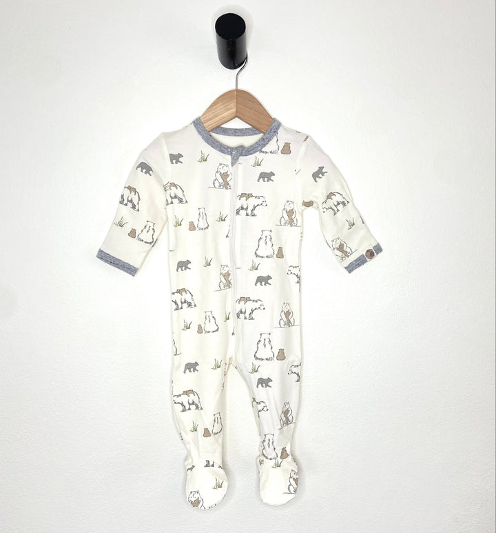 This two-piece pajama set features a charming bear family print on a natural base with Heather grey trim, offering a cozy and timeless look. Designed to fit both infants and toddlers, it ensures a snug, comfortable fit through your child’s early years. Made from a unique blend of organic cotton,...