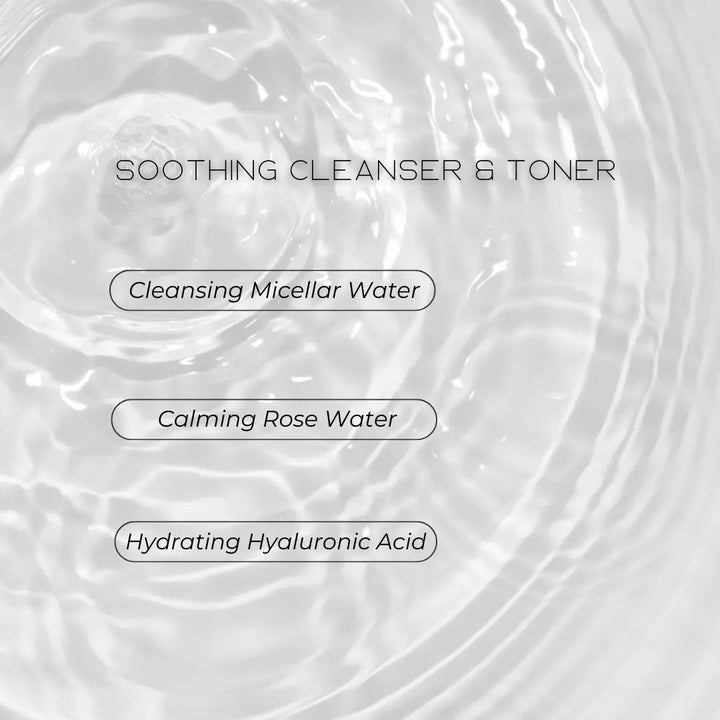 Calm Cleanse Gentle Face Wash and Toner + Hyaluronic Acid, Micellar Water, and Organic Rose