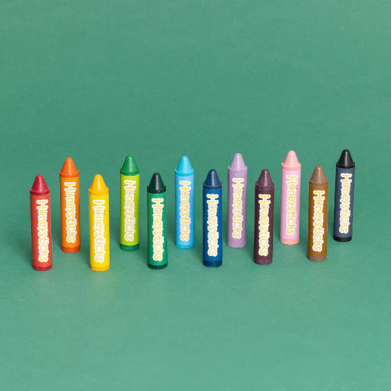- Honeysticks Jumbos 12 Pack: Designed as a longer and thicker crayon to promote increased control with a developing pencil grasp in children. Each non-toxic crayon is 10cm long and 2cm thick.