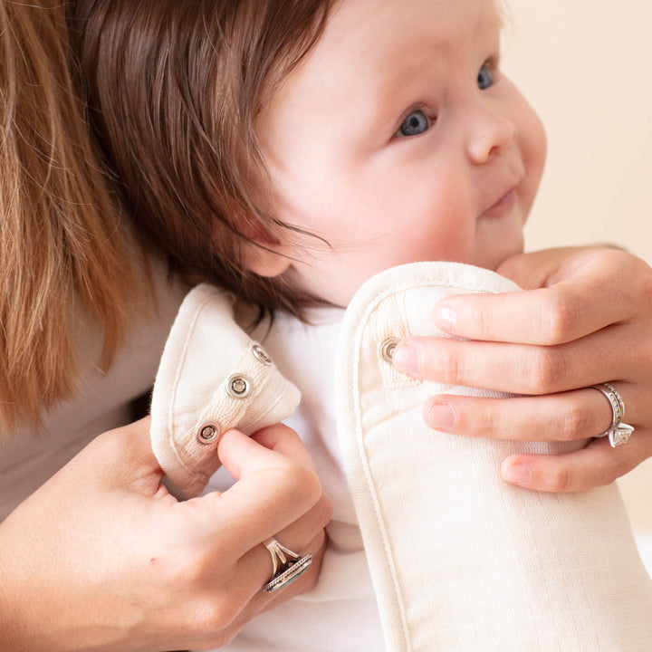 Crafted from 100% organic cotton, these muslin baby bibs are a natural, low-impact alternative to synthetic baby accessories. Organic cotton uses significantly less water, avoids harmful pesticides, and supports healthier soil and farming communities. Designed for long-lasting use and built to handle daily messes, these bibs are a reusable, zero-waste essential for eco-conscious parents.