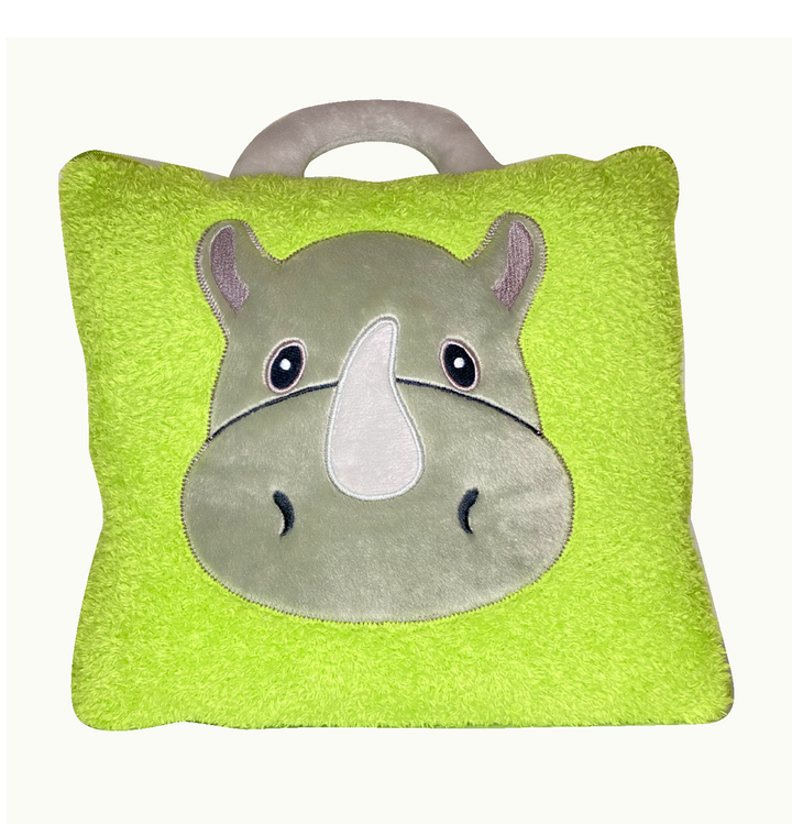 Plush Rhino case with attached blanket inside
