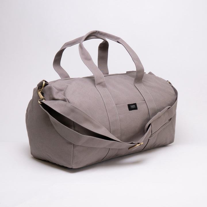 Built for longevity and reusability, the Aarde Gym Bag can be repurposed or donated when no longer needed. The cotton canvas is compostable in industrial facilities, excluding hardware like zippers and straps. Disassemble before disposal for best end-of-life practices.